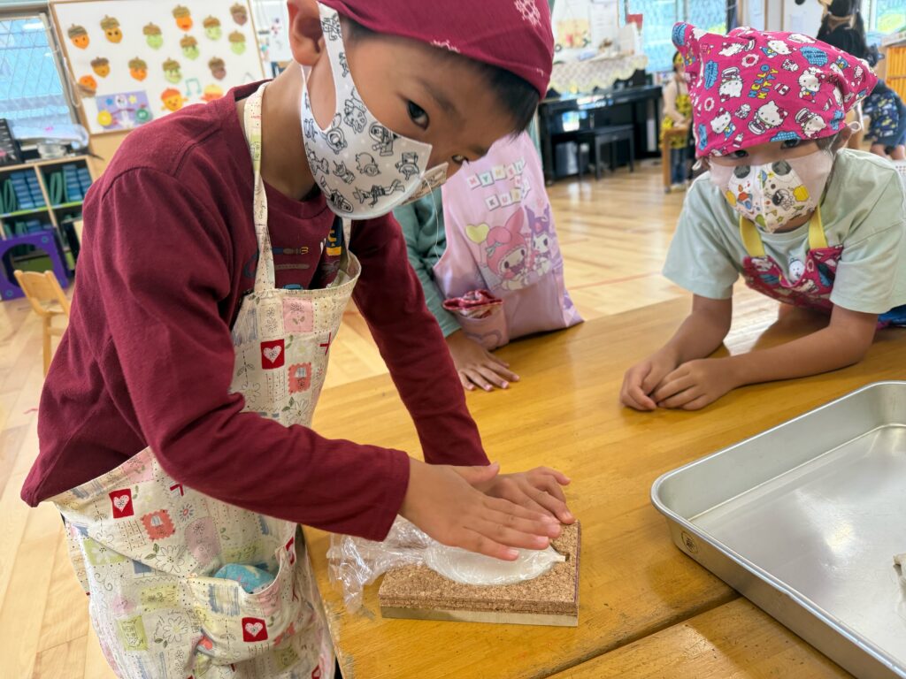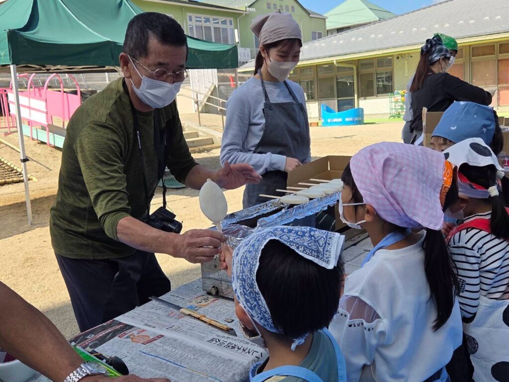 10/27(月) 馬籠宿かなめ屋の五平餅屋さんに来て頂き、年長組で五平餅作りを行いました。