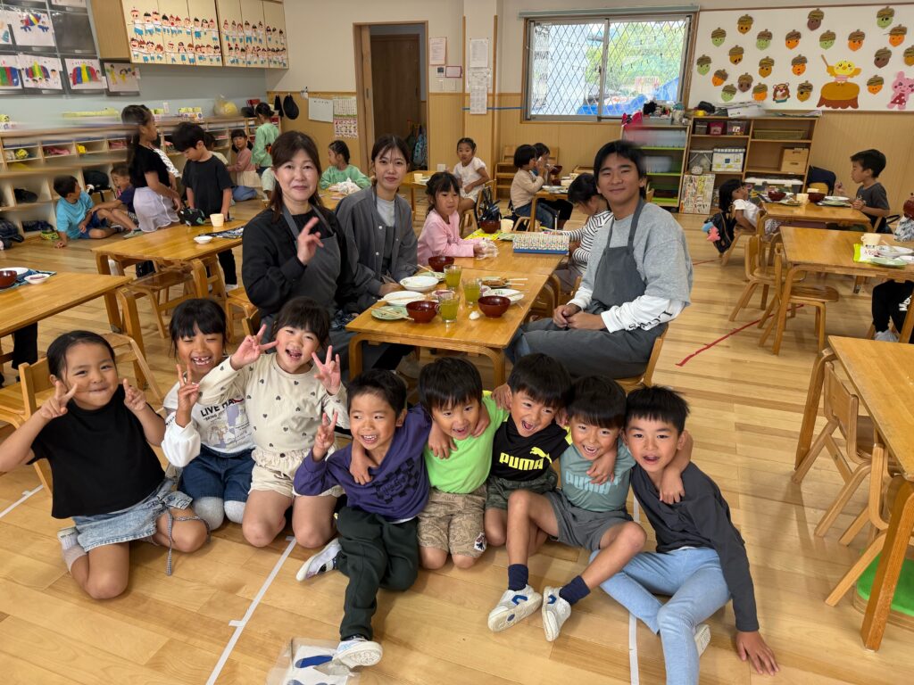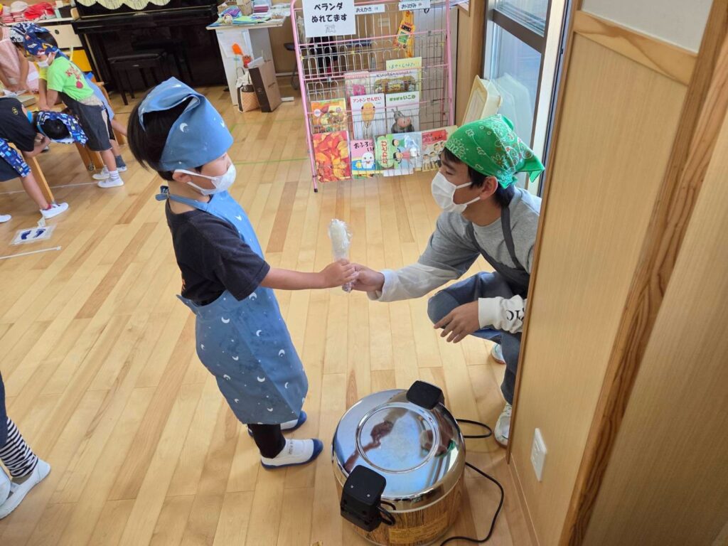 卒園児のお兄ちゃんがお手伝いに来てくれ、お兄ちゃんからご飯を受け取り準備開始!!