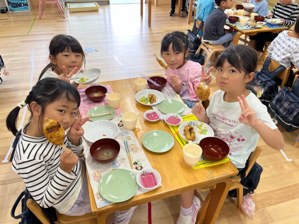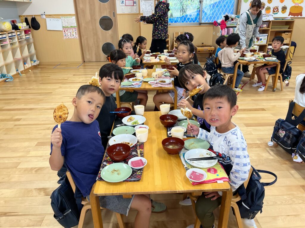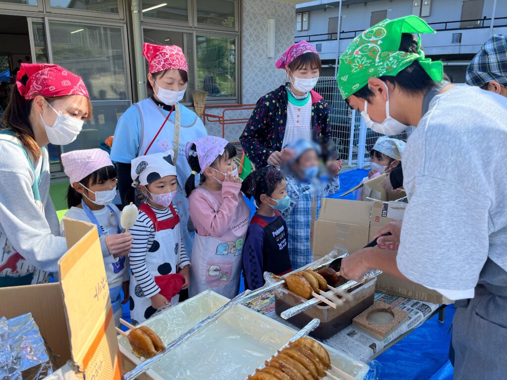 焼き台は幼稚園近くのなごみの里さんにもお借りして、素焼き、本焼きをしました。自分の五平餅を観察しながら「色が変わってきたね」「いい匂いがする」と美味しそうな五平餅ができました。卒園児のお姉ちゃんも一緒焼いてくれました。