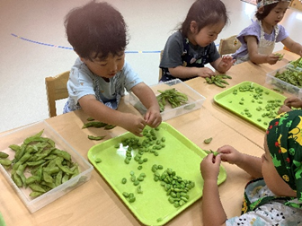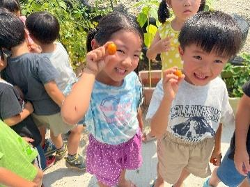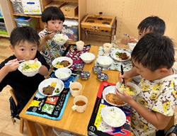 食事を通して健やかな心身を育み、食に関する知識や経験を深め、望ましい食習慣を身につけることを目標にしています。給食提供だけでなく、準備・配膳・片付け、栽培活動、調理体験、食文化の学習、絵本の読み聞かせなど、様々な活動を通して実施します。