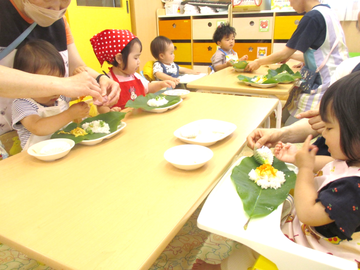 0~2歳児は、上記のうちお盆期間中の1日のみお弁当持参です。